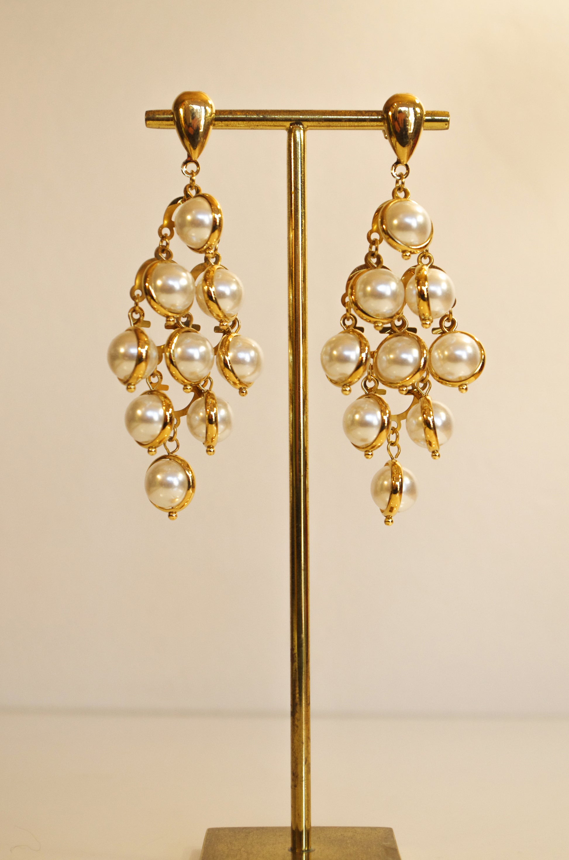 Boucles d'oreilles grappe en acier inoxydable et perle synthétique.