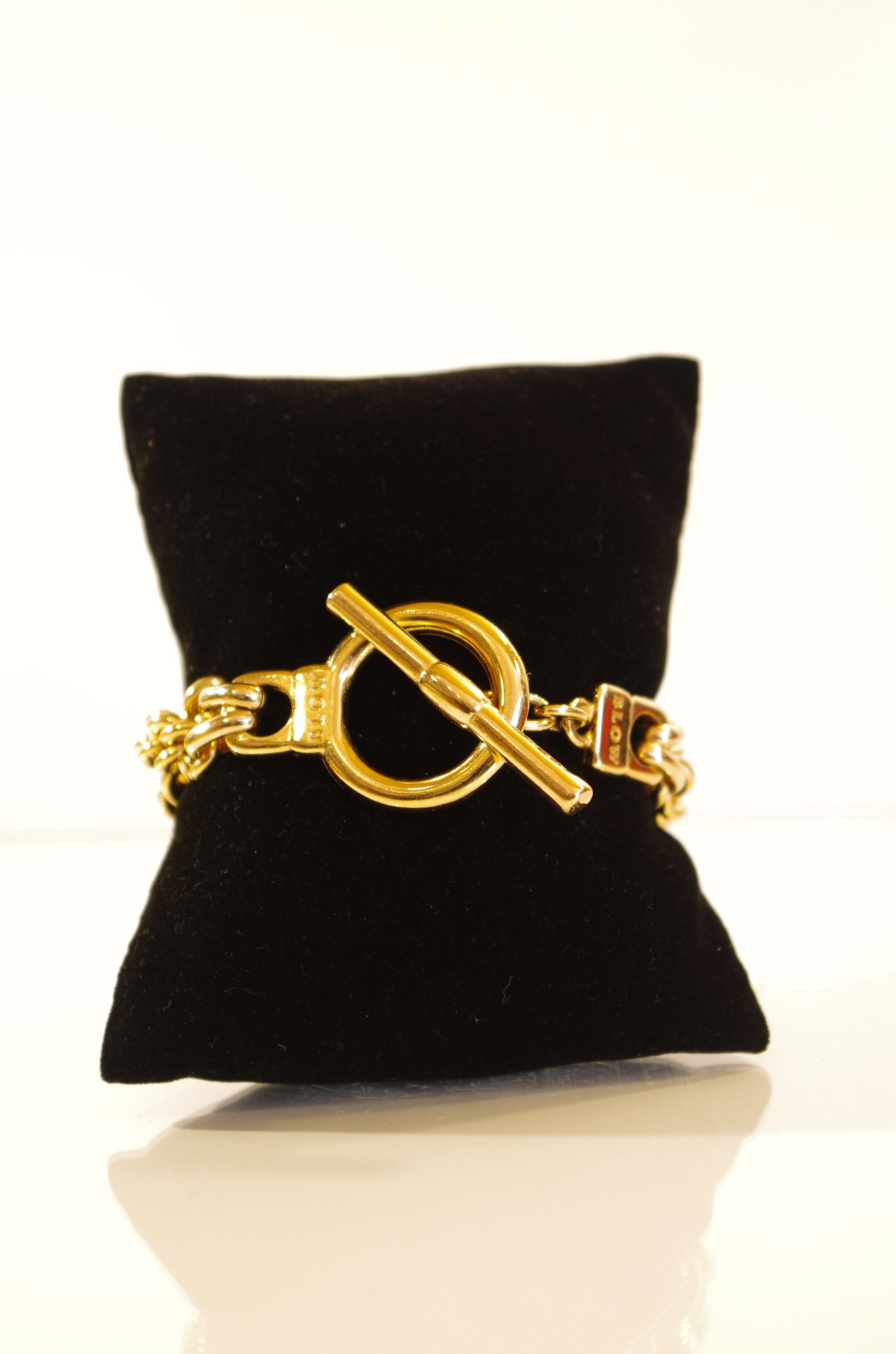 Bracelet double maille en plaqué or 24 carats d’une épaisseur de trois microns.